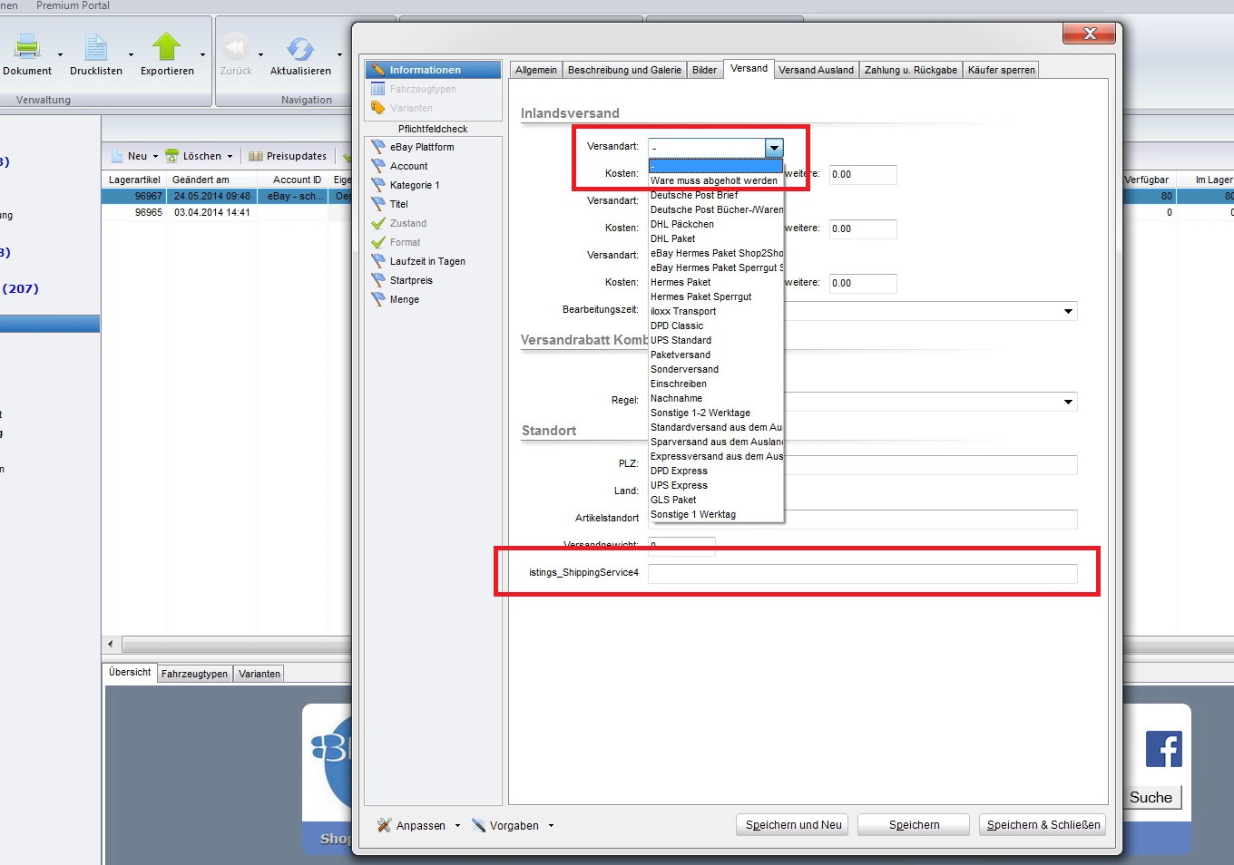 "3. LISTINGS: Im Versand haben wir eine 4. Versandmethode eingerichtet. Nutzen Sie die vorwiegend für Selbstabholer."
