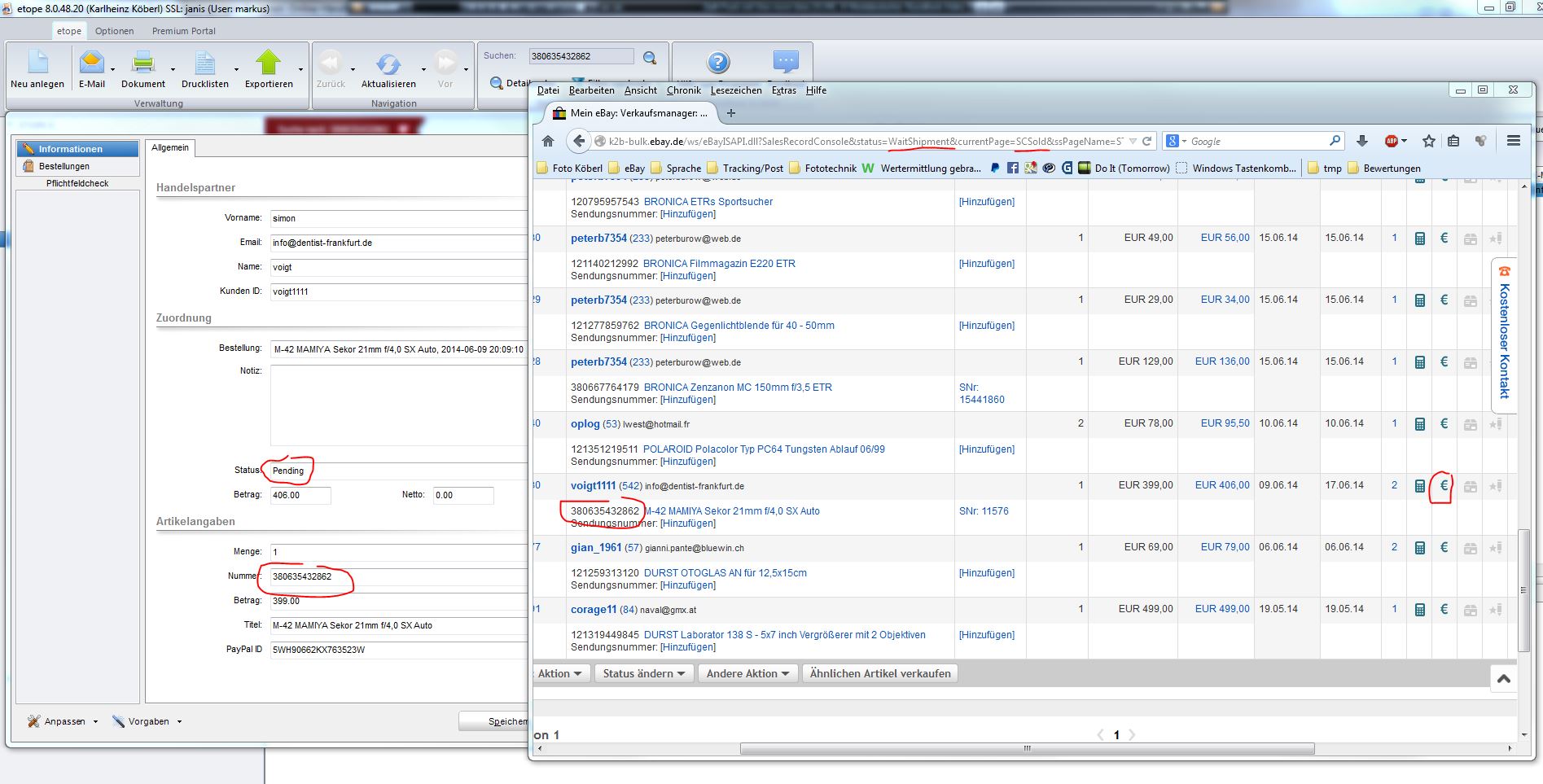 Auch bein PayPal selbst finde ich diese Sache mit den einbehaltenen Zahlungen etc. nicht einfach nachvollziehbar. Wenn man da - irgendwann - was hinbekommt, was die Sache in etope 8 "easy" macht, könnte man sich so richtig verdient machen ....