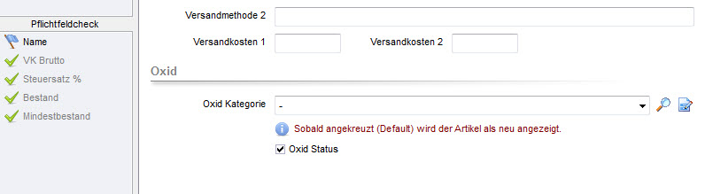 2. In den Oxid Artikel das gleiche Feld angelegt (bitte nicht den gleichen Feldnamen) und mit dem Feld im Lager gemappt.