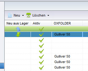 Neue Artikel aus dem Lager werden mit grünen Pfeil nach unten angezeigt.
