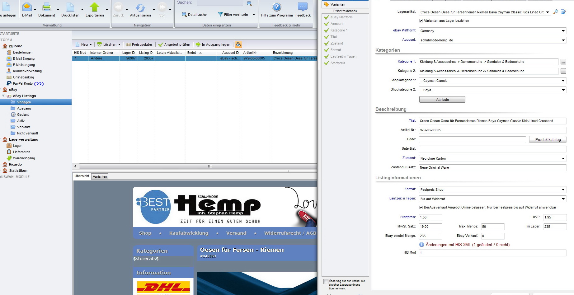 Bei Schuhen könnte ich ja auch statt Größen verschiedene Farben haben. Das wäre dann auch jeweils eine andere Bilderserie. Kann Ebay das? Sicher, denke ich. Aber mit einem eigenen Template und intergrierter Bidergalerie aus et8 ist man dann wahrscheinlich an die Grenze dessen gekommen, was machbar ist, oder? *