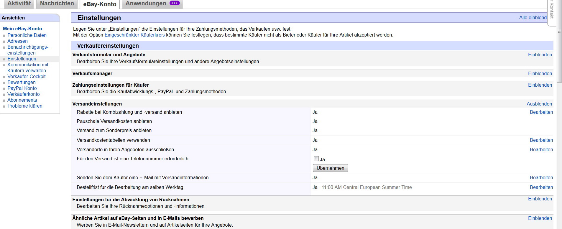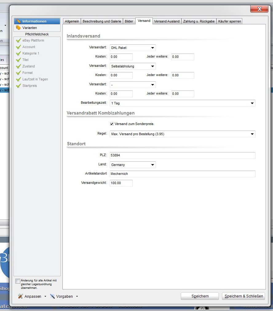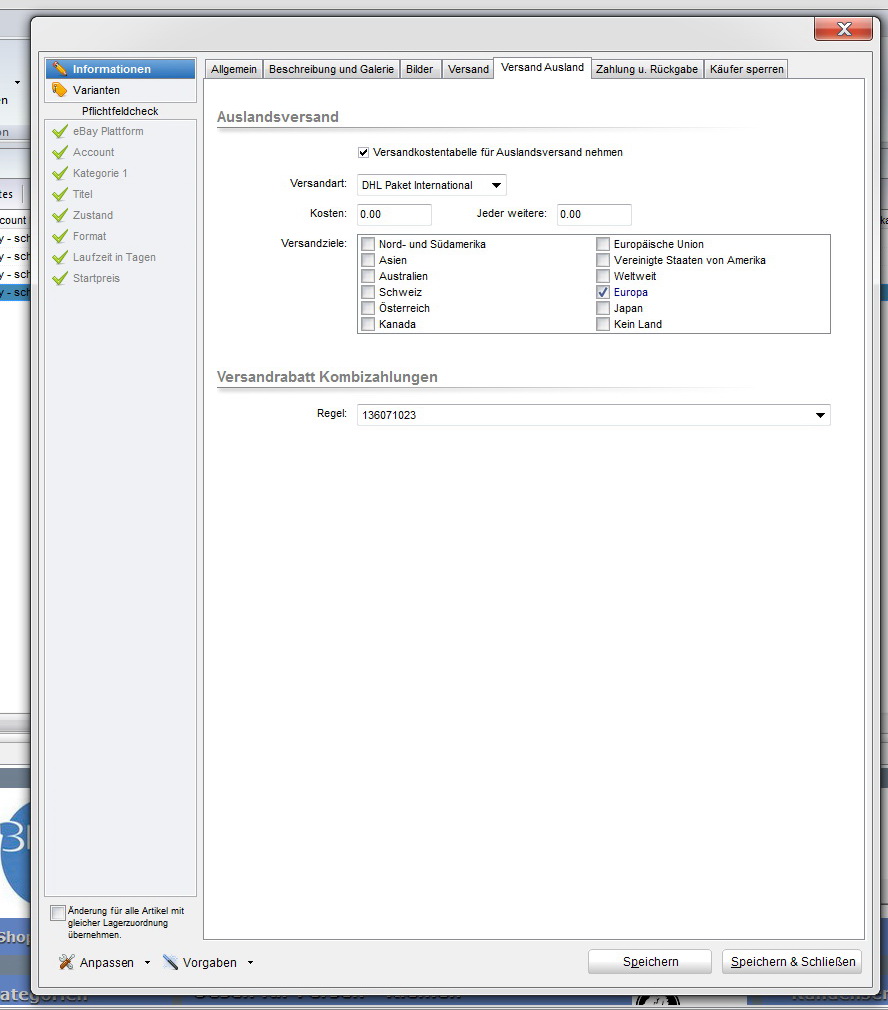 der Versandrabatt Kombizahlung ist eine andere Einstellung bei Ebay