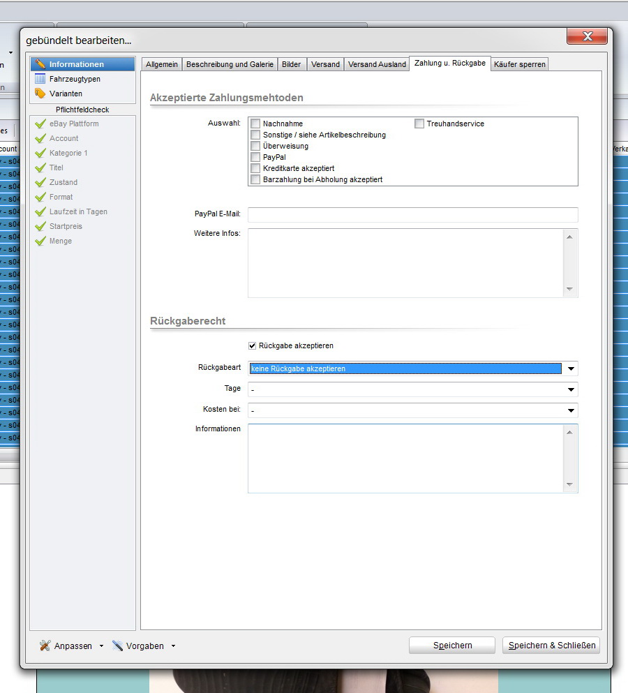 das hatte ich eingetragen - aber den Haken bei "Rückgabe akzeptiert" nicht gesetzt !