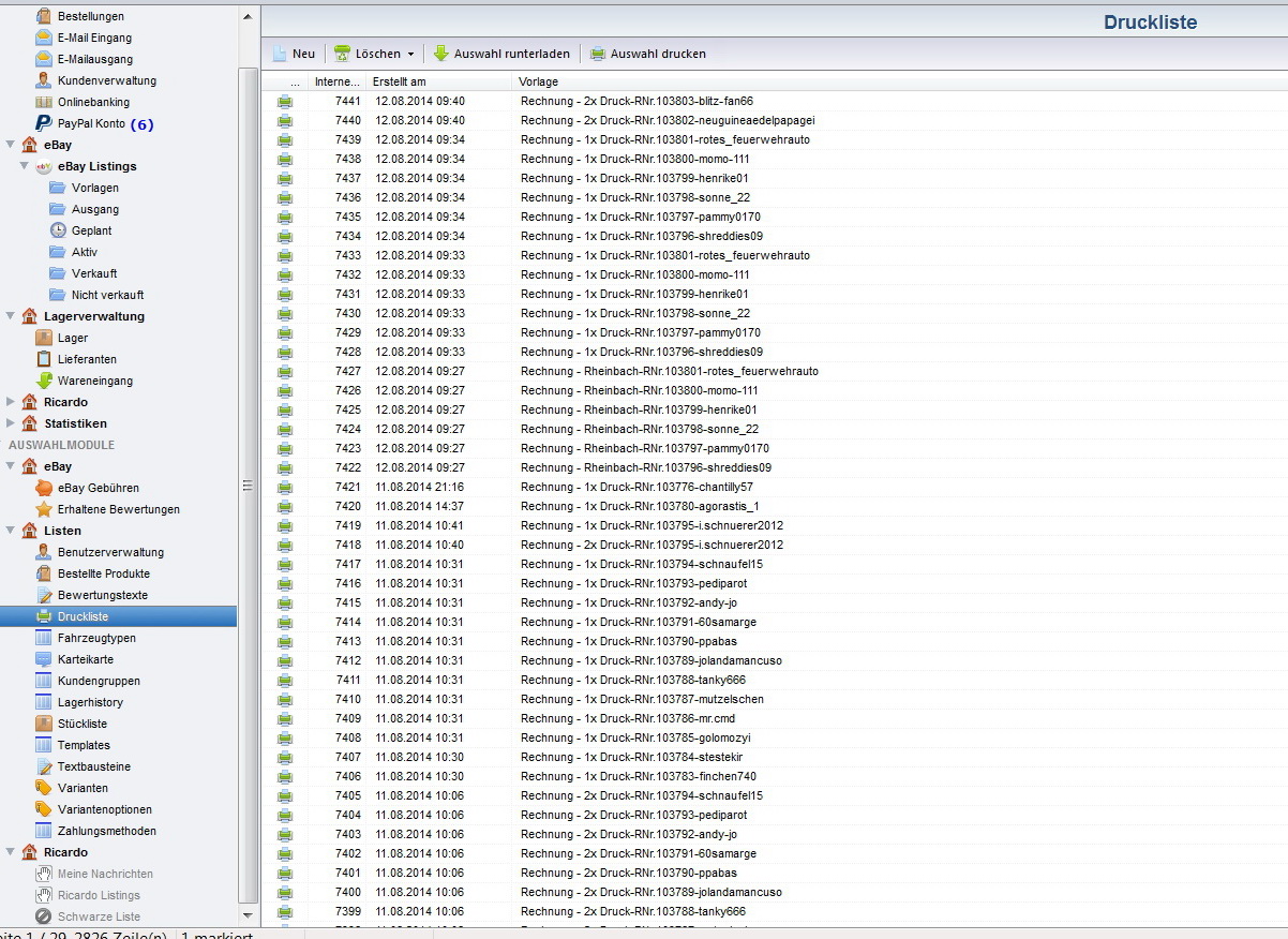 @Mike Grund: Das ist übrigens auch noch ein wichtiger Punkt, welchen wir mal beprechen müssen, dass jeder Druckbeleg (auch bei Mehrfachdruck) in der Druckliste auftaucht. Der Doppeldruck bei solchen Rechnungsänderungen beispielsweise hat dann auch noch eine Zufallszahl im Dateinamen vorangestellt, so dass man diese Belege nicht mal mehr wiederfindet ;-(( Sehr schwierig für mich beim monatlichen Herunterladen der Rechnungen auf den lokalen Datenträger, die korrekten Rechnungen zu finden und zu markieren. Warum wird diese zufallszahl nicht am Ende angefügt, damit man die Rechnungen wenigstens nach Dateinamen sortieren kann??