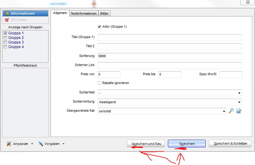 Programmfehler Oxid Modul - Kategorien: Tastenkombi Alt-P