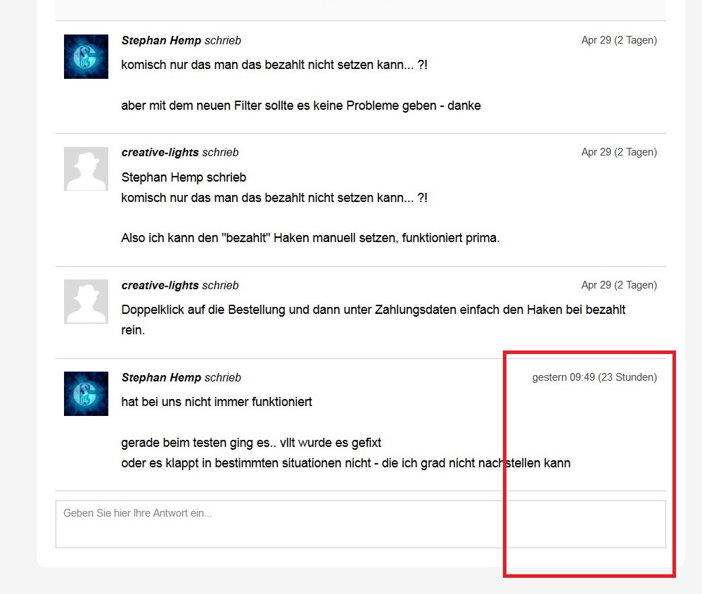 Hier war es vom Support auf "gelöst", diese Infos sieht man nicht.
