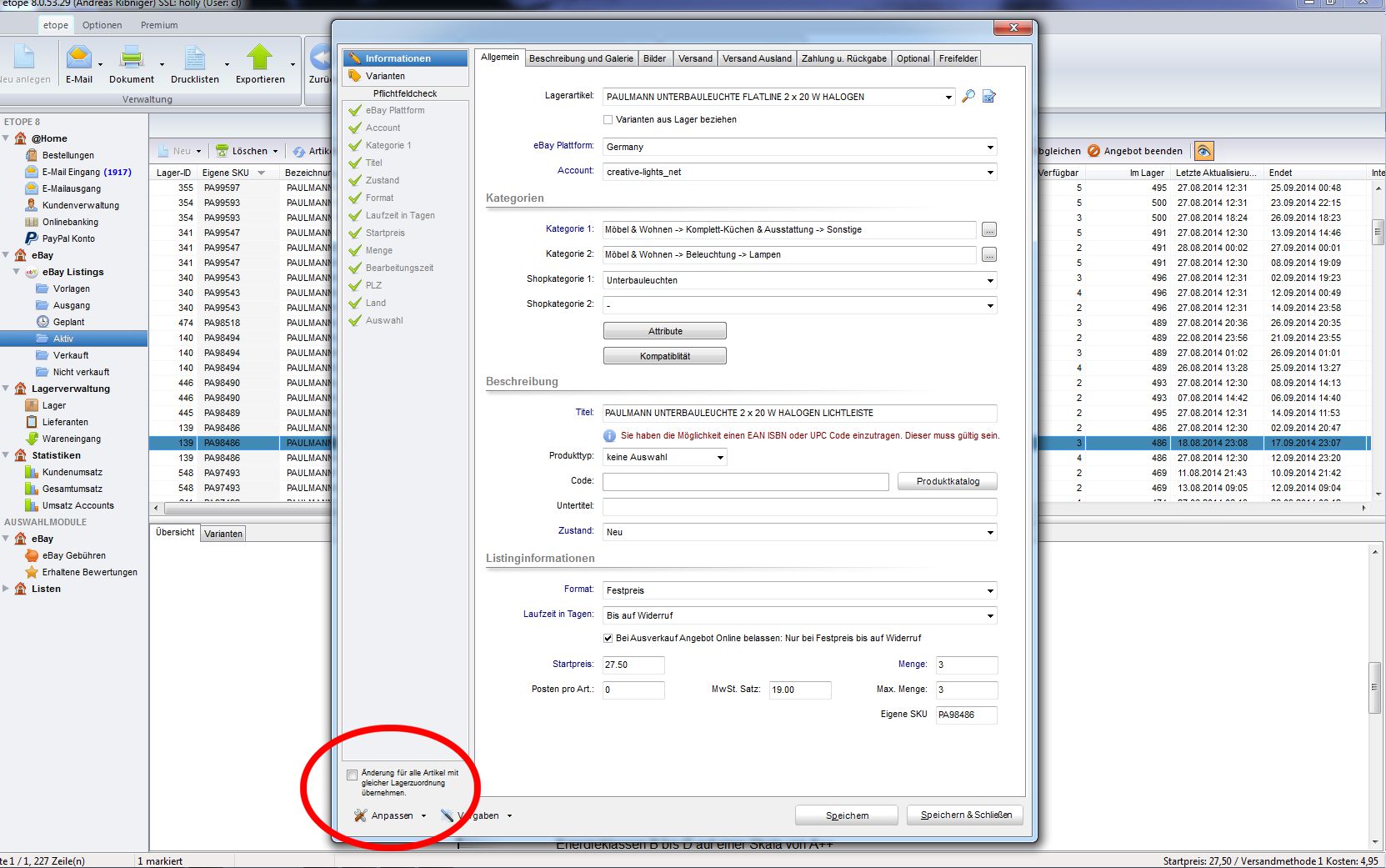 Ich hatte eigentlich gehofft, dass man eventuell Beschreibungs oder Bild-Änderungen bei einem Lagerartikel bis hin zum aktiven Ebay Artikel durchreichen kann, um sich doppelte Arbeit zu sparen. Das neue Automapping mappt ja dann nur in die Ebay Vorlage.Dann habe ich aber noch nicht den bei Ebay Artikel geändert.